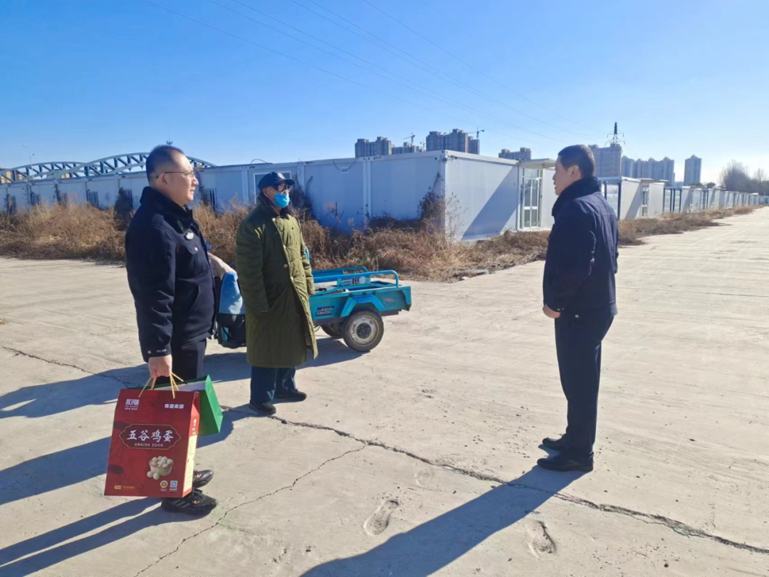 近日,金盾公司黨支部書記、執(zhí)行董事范丙磊同志到方艙醫(yī)院駐勤點(diǎn)走訪慰問(wèn)一線職工譚洪全同志,公司黨支部成員呂鵬、保安保潔服務(wù)二隊(duì)隊(duì)長(zhǎng)朱孝輝陪同。